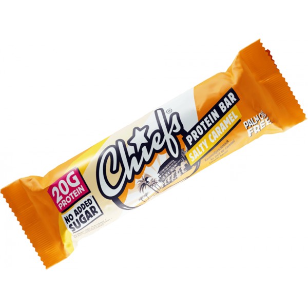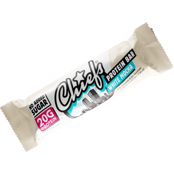 Švýcarská proteinová tyčinka Chiefs nabízí čistý požitek bez kompromisů. Křupavá na povrchu, měkká uvnitř a obalená v té nejjemnější švýcarské čokoládě – podle varianty v mléčné nebo bílé. Nejlepší na tom je, že každá tyčinka Vám dodá pořádnou porci bílkovin bez přidaného cukru. Díky 20 g bílkovin je to dokonalá pochoutka, která Vás nastartuje na celý den! Chiefs proteinová tyčinka je prostě zdravá a chutná náhrada nezdravých čokoládových tyčinek.